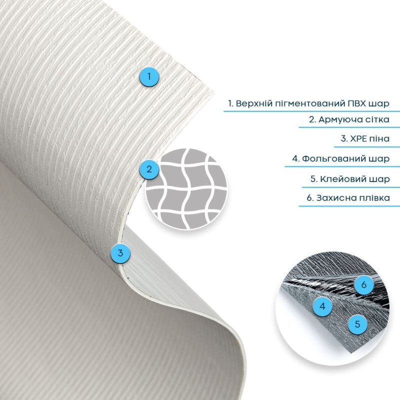 5. Дополнительный комфорт – основа из ХРЭ и фольгированный слой обеспечивают умеренные тепло- и звукоизоляционные свойства, делая ваше помещение более уютным.