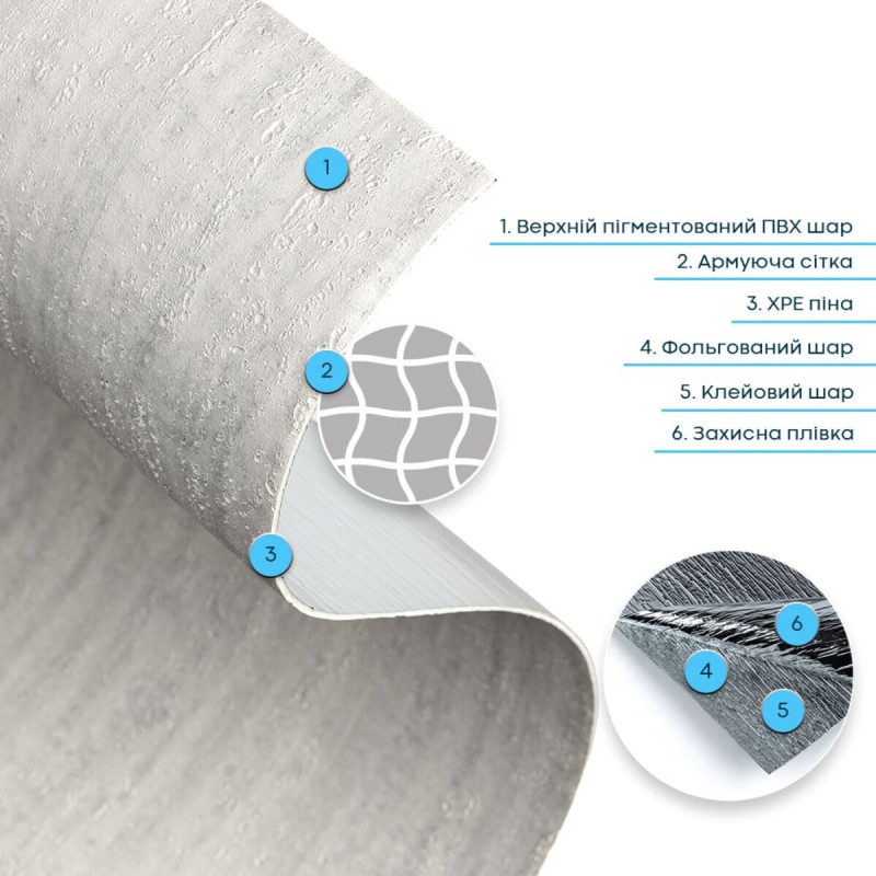 5. Дополнительный комфорт – основа из ХРЭ и фольгированный слой обеспечивают умеренные тепло- и звукоизоляционные свойства, делая ваше помещение более уютным.